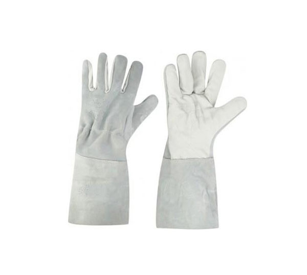 Luva de segurança confeccionada em vaqueta natural , modelo 5 dedos, tipo petroleira, com dorso e polegar em raspa, com reforço palma interno.
