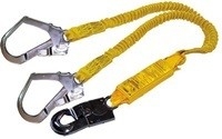 Talabarte de segurança em Y com absorvedor de energia é confeccionado com cadarço de poliéster tubular de 25 mm com elástico, trava dupla e automática.